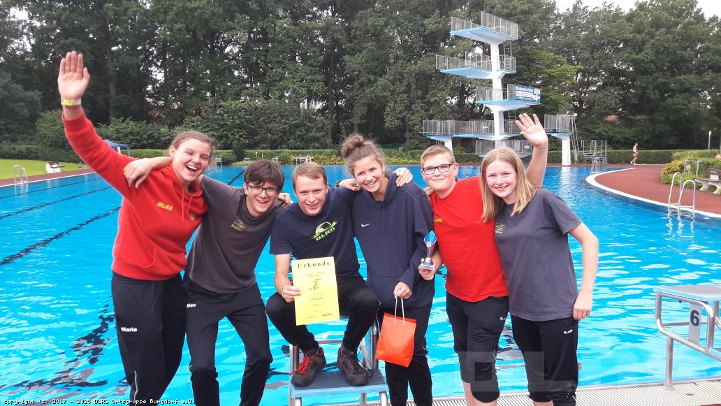 Von Samstag, den 12.8., auf Sonntag, den 13.8., fand in Hängisen das 24-Stunden-Schwimmen statt. Zum wiederholten Mal sind wir, mit sieben Mitgliedern aus unserer Ortsgruppe, an den Start gegangen. Wir sind mit unserem Zelt im Gepäck angereist, um zwischen den Nachtschwimmzeiten auch mal ein wenig zu schlafen. Mit 11.450 Metern sind wir fünfter Platz von insgesamt sieben Mannschaften geworden. Für uns war es ein sehr schönes und spaßiges Wochenende, trotz des Regens und den niedrigen Temperaturen am Samstag und in der Nacht.